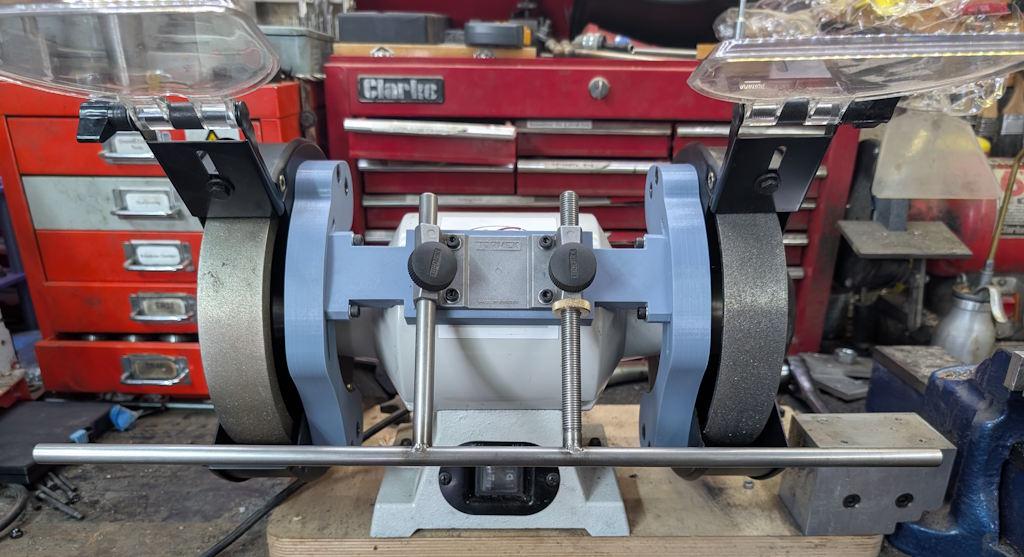 - I added a CBN wheel to the left-hand side (with some home-made bushes) to replace the original aluminium oxide wheel.