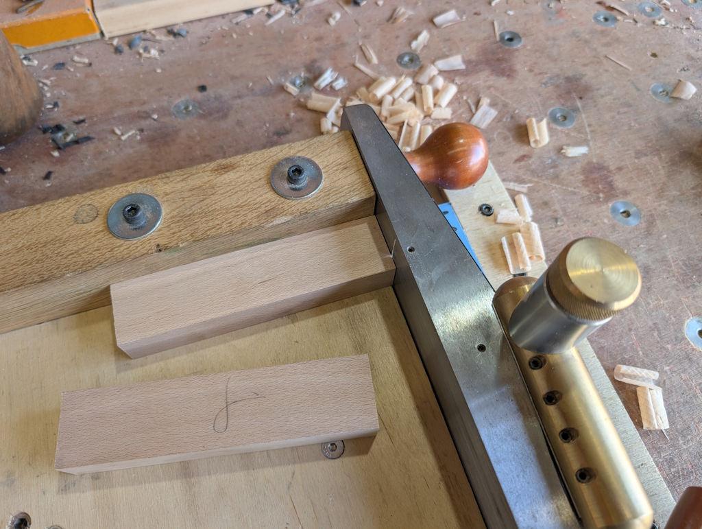 There was then quite a bit of work done with a 4 mm mortice chisel (the next size down I had from the 5.5 mm-ish size of the slot in the existing clamps):