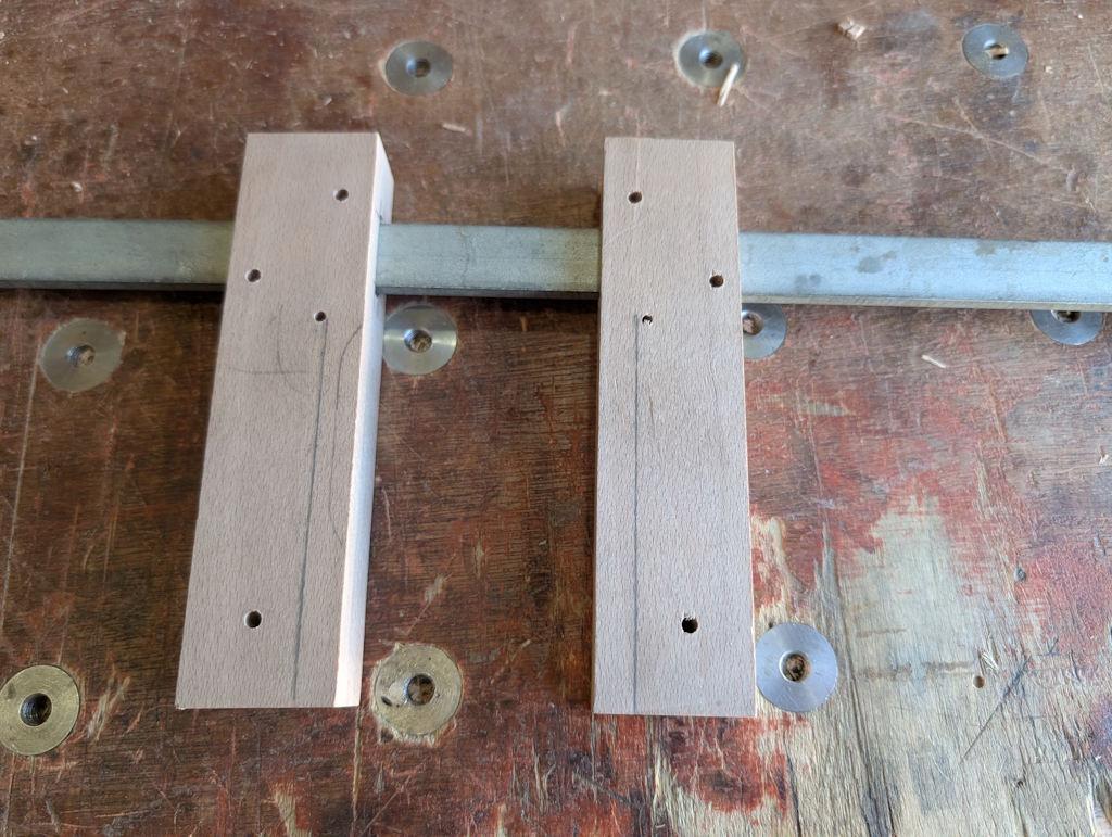 I also drilled the two ends of the bar hole mortice with a 5.5 mm drill. Normally, I'd leave the ends square, but the original clamps had rounded ends so I thought I'd copy that design: