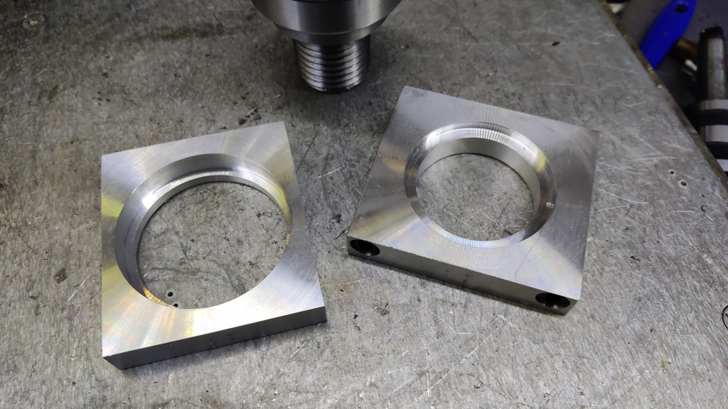 With that done, I skimmed the face (to make sure it ends up square with the axis of the bore) and then drilled and bored the through hole and the bearing seat:
