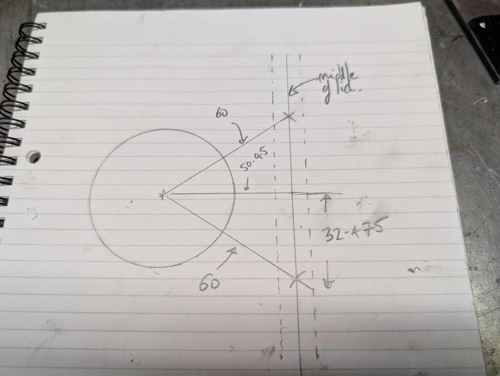 That simple bit of maths gave me the locations to drill and tap an M5 hole and to drill and ream an 8 mm hole:
