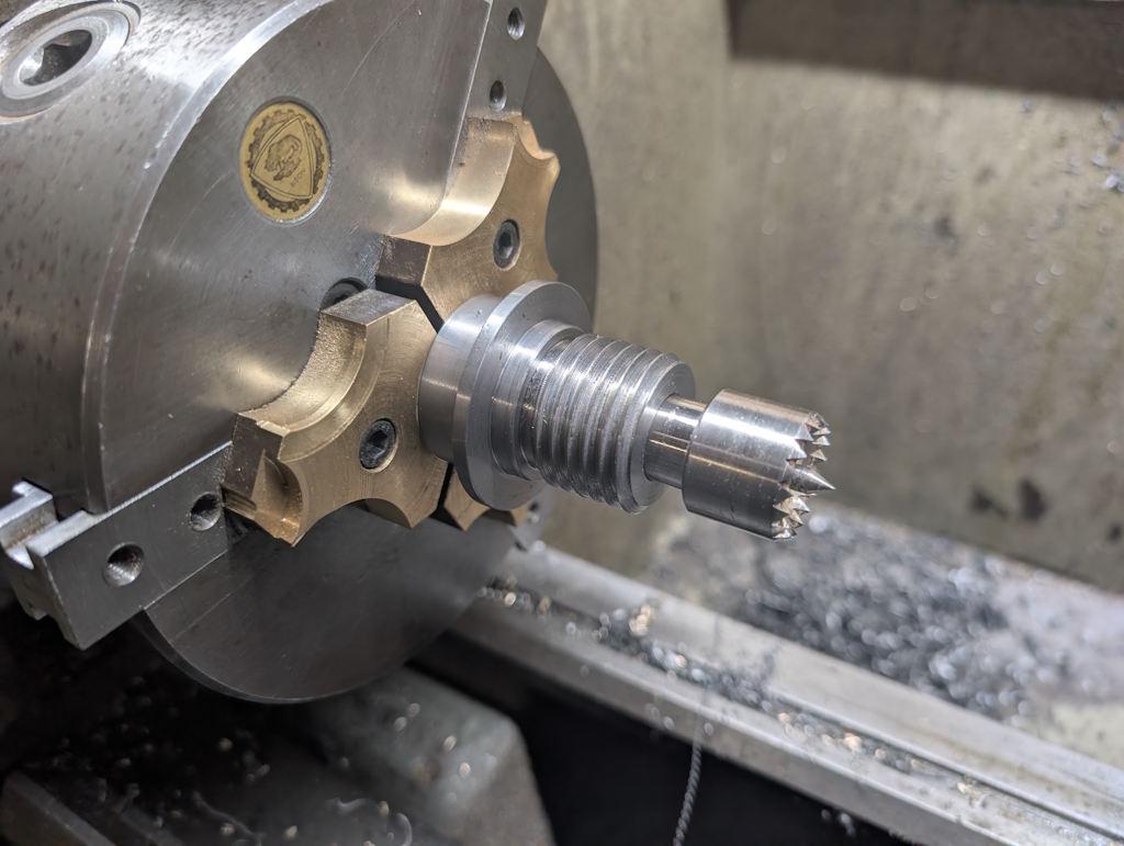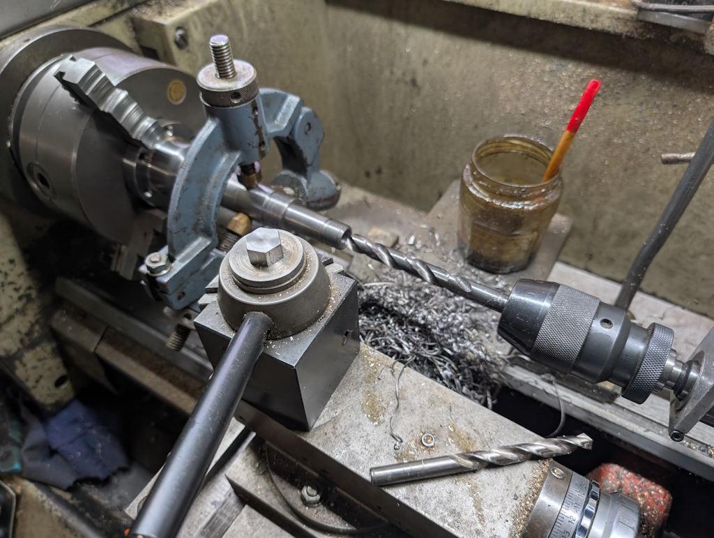 Once it was in the soft jaws and I'd drilled through and then bored and reamed the Morse taper, it was with quite a sense of relief when I got the hole size about right: