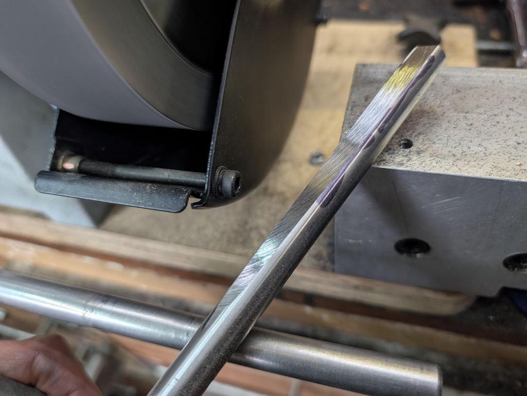 The HSS bar got rotated in the jig by a little over 90° (I didn't even try to measure the angle, just eye-balled it) and more grinding happened: