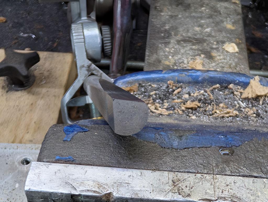 With the sides profiled, I could grind some relief on the end as well, again doing so at a completely arbitrary angle: