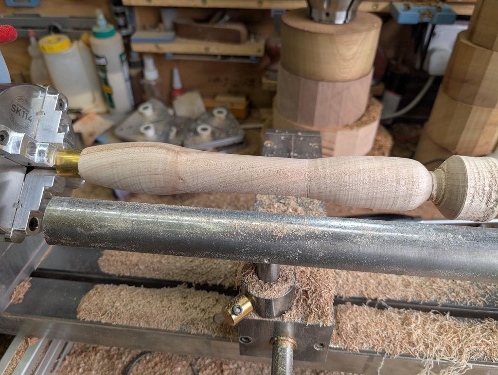 I could then fit the ferrule, which was again a tight fit so didn't need any glue. With the ferrule fitted, I could put the tool back in the lathe...